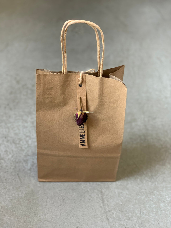 Every package comes with the option of a personalized card, and arranged in either a box, kraft or cotton muslin bag or basket.