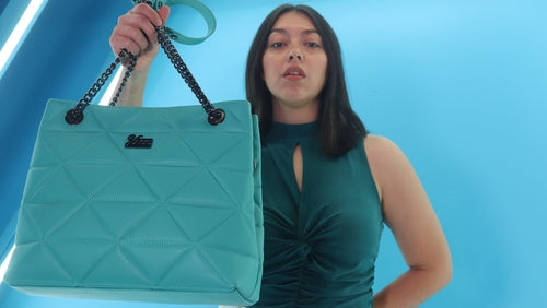 A Classy and Sophisticated design! The carrying chain with leather inserts adjusts automatically from shoulder length to crossbody length, making this the perfect carryall.